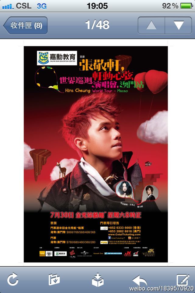 皇上契媽@微博透露,澳門演唱會售票將於6月份開始,詳情請密切留意歌迷會及其他官方消息公佈!